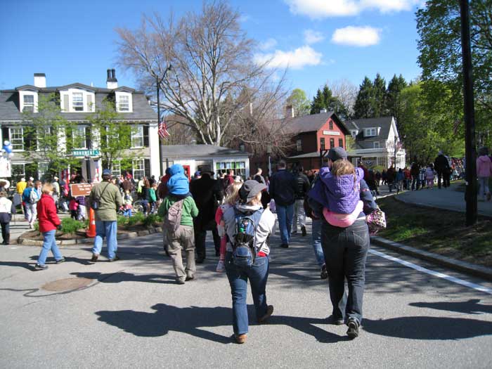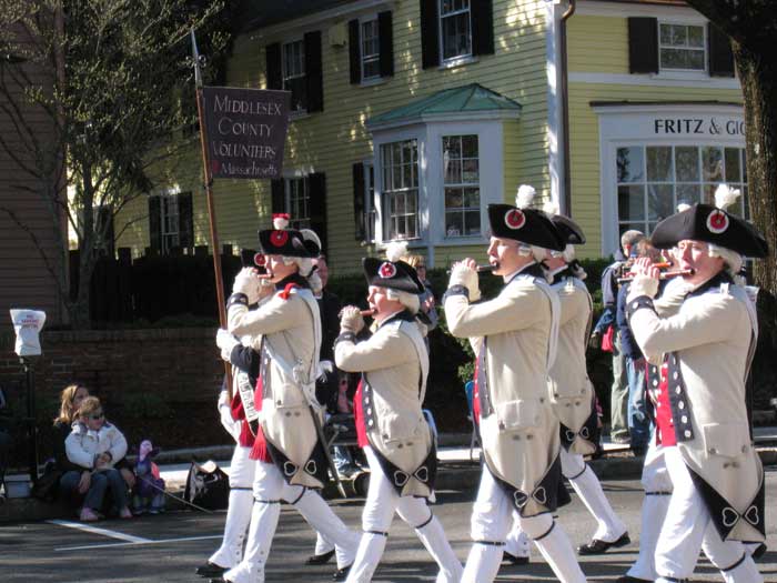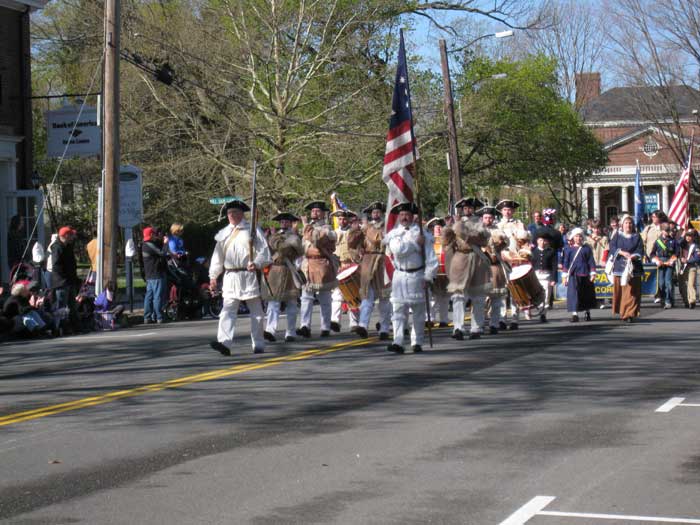 Wlasciwie to powinnam w takim razie ponarzekac, ze u nas, oprocz wielu innych spraw, jakis czas zajelo nam takze radosne swietowanie kolejnej rocznicy Bitwy o Concord, i piknik – tym razem jednak nie na trawie (za bardzo mokro po wiosennym potopie), a w Colonial Inn, usytuowanej niezwykle wygodnie na trasie pochodu. 😉 Moze jakas mala pocieche znajde dla siebie w zastanawianiu sie, czy wiosenne ulewy to takze nie byl jednak jakis straszny meteorologiczny spisek, przez ktory tradycyjna trasa parady concordzkiej ulegla czesciowej zmianie. 🙄 Ale po tylu latach juz troche trudno winic o to Anglikow, zwlaszcza, ze biora oni aktywny udzial w uroczystosciach. 😉