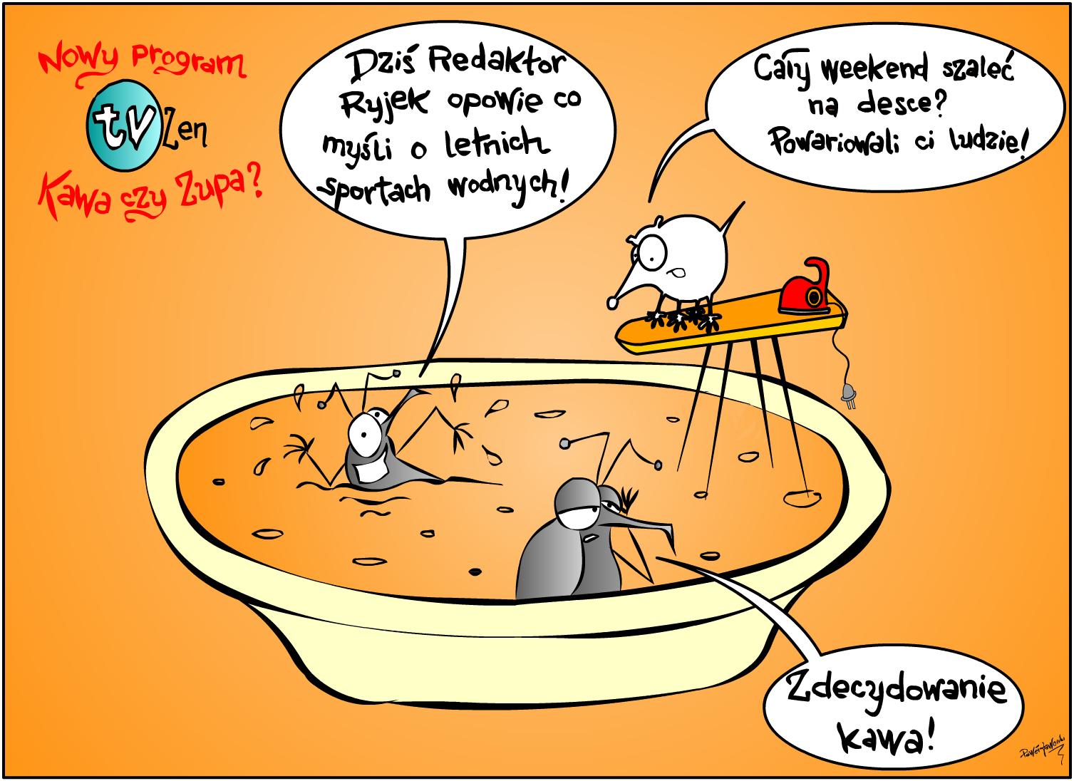 Mnie też bardzo trudno byłoby precyzyjnie określać granice satyry, bo to od tylu rzeczy zależy… Pewnej zasady może bym się sam, jako satyryk, trzymał – im bardziej masowe medium, tym bardziej trzeba uważać. W wąskim gronie, w niewielkiej grupie docelowej, można mniej więcej przewidzieć, jaki jest rodzaj poczucia humoru, jakie będą reakcje, kto zrozumie, komu nie sprawi przykrości, itd. Przy widowni masowej zawsze się trzeba liczyć z tym, że ona odbierze inaczej niż kumple od kawy i koniaku. 😉
